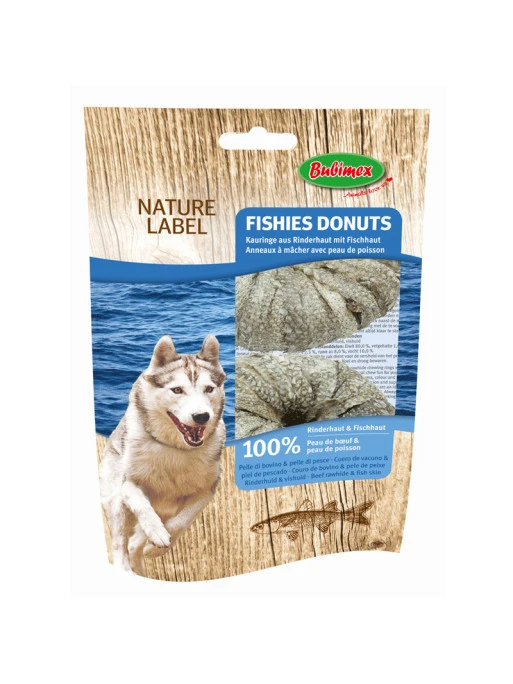 Les donuts de boeuf et poisson Bubimex sont une ru00e9compense tru00e8s prisu00e9e qui ravira votre chien, empu00eachant l’accumulation de tartre sur les dents.