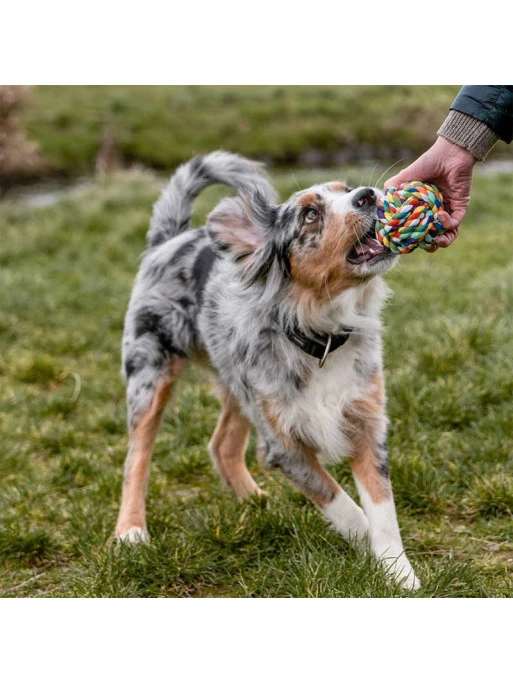 Ru00e9alisu00e9e u00e0 partir d’une corde en coton qui contribue au soin dentaire, la balle de jeu Nobby et ses nombreuses couleurs vous permettent de passer de longues heures de jeu avec votre chien afin de contribuer u00e0 sa du00e9pense physique quotidienne.