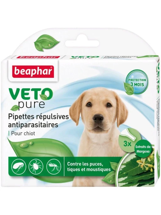 Les pipettes ru00e9pulsives antiparasitaires Vetopure de Bu00e9aphar sont une solution efficace et naturelle pour protu00e9ger votre chiot des puces, tiques et moustiques sans lui occasionner de gu00e8ne.