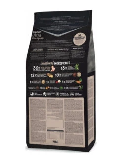 Viande 30% (viande déshydratée 20%, agneau frais 10%), riz complet (15%), orge complet (10%), graisse de poulet, blé complet (9%), maïs complet (8%), petits pois entiers (5%), son de blé (5%), caroube (2%), pomme fraîche (1%), huile de saumon, graines de lin (1%), pulpe de betterave, fructo-oligosaccharides et mannane-oligosaccharides, levure de bière (0,5%), herbes botaniques 0,02% (fenouil, échinacée, thym), extrait de yucca schidigera.
