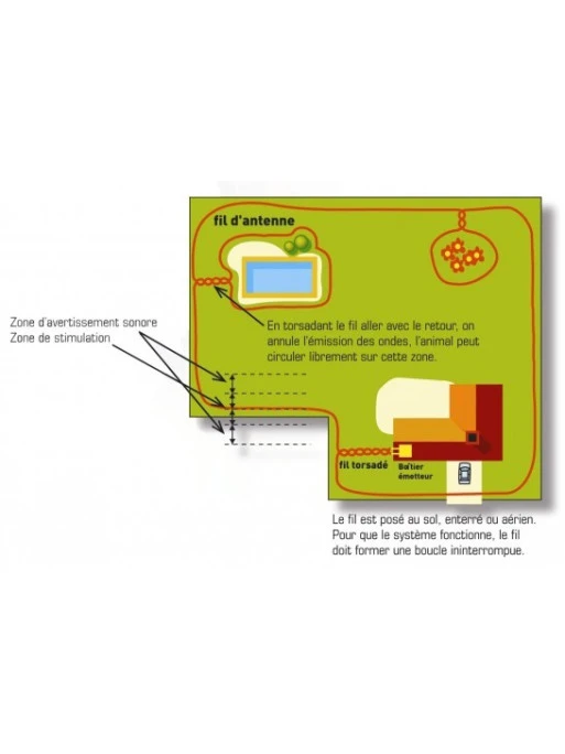 Le fil d’antenne sert à délimiter l’espace autorisé et fermé pour votre animal, et émet un signal radio inoffensif.