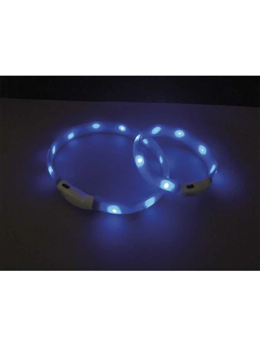Le collier lumineux LED « Visible » est fabriquu00e9 en silicone avec une largeur de 25 mm. Les LED clignotantes sont visibles jusqu’u00e0 500m celles-ci peuvent clignoter de 3 fau00e7ons diffu00e9rentes.