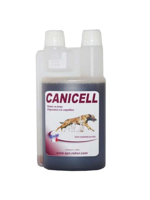Par son apport en fer et vitamines B12, le complu00e9ment alimentaire Canicell 250ml Rekor permet de stimuler les ru00e9serves u00e9nergu00e9tiques et la construction musculaire de votre chien.