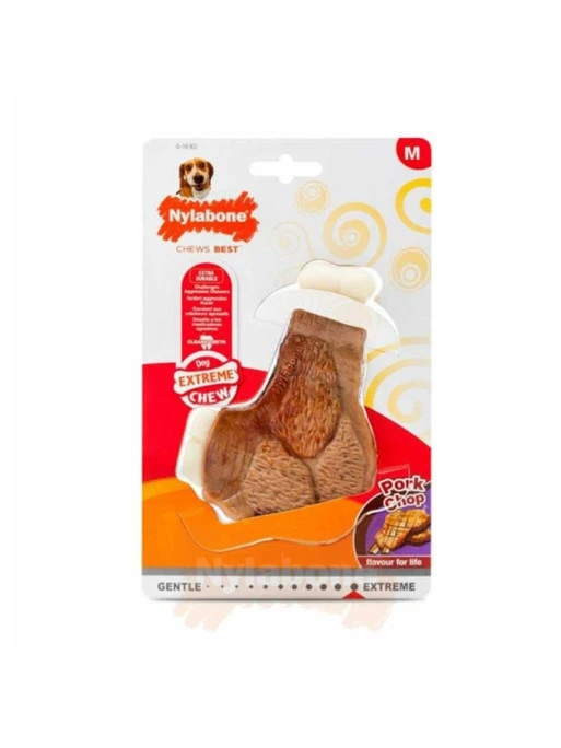 Vu00e9ritable alternative aux os classiques, la cu00f4te de porc en nylon Extreme Chew Chop Nylabone a de quoi mettre en joie et donner envie de machouiller u00e0 votre compagnon u00e0 quatre pattes.