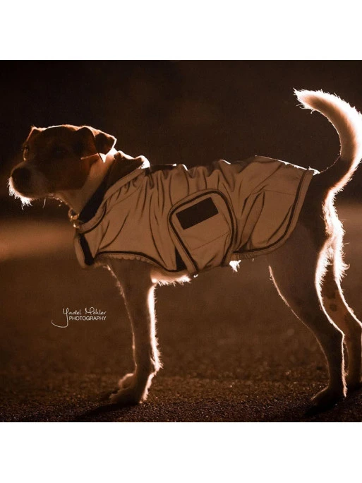 Cette couverture réfléchit la lumière pour rendre visible votre compagnon à 4 pattes et assurer sa sécurité.