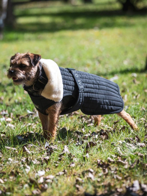 La couverture pour chien GEM combine u00e9lu00e9gance des du00e9tails et confort de la coupe lors des sorties hivernales en compagnie de votre fidu00e8le compagnon