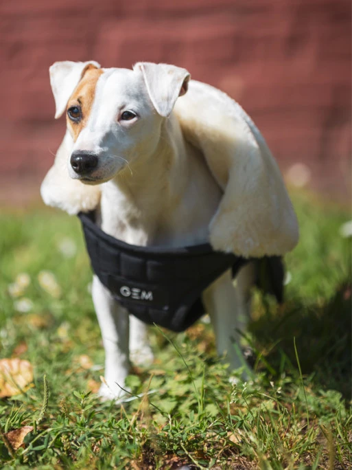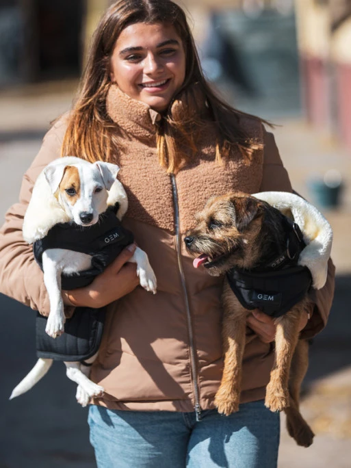 La couverture pour chien GEM combine élégance des détails et confort de la coupe lors des sorties hivernales en compagnie de votre fidèle compagnon