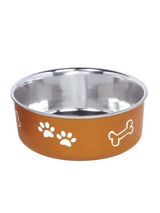 Conu00e7ue en acier inoxydable avec un u00e9lastique sur le dessous afin que celle-ci reste bien fixe, la gamelle Fusion Nobby est pourvue de motifs de pattes et d’os repru00e9sentatifs du chien.