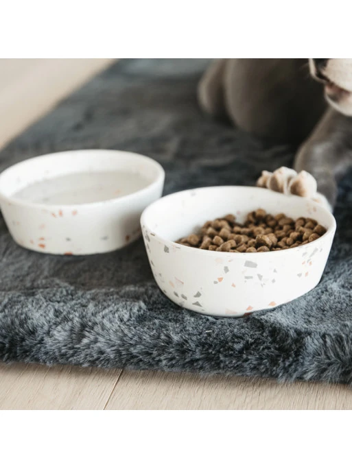 Dotu00e9 d’un design original et coloru00e9, la gamelle pour chien Bamboo Terrazzo Kentucky peut comporter aussi bien de l’eau que des croquettes et sa base en silicone lui permet d’u00eatre antidu00e9rapante.