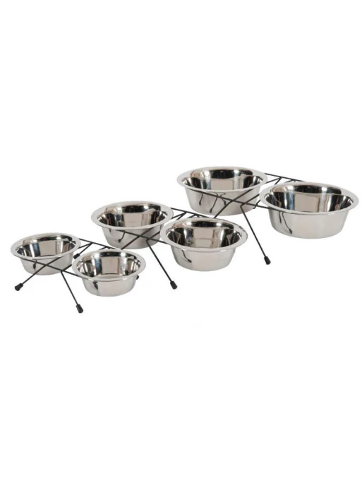 Le support est en métal avec des pieds légèrement relevés du sol qui proposent aux maîtres une meilleure hygiène pour leur chien.