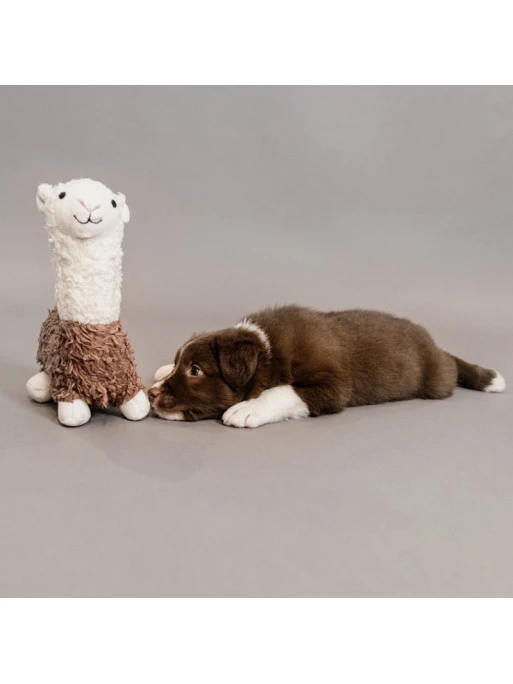 L’alpaga Alfredo est une peluche Kentucky conu00e7ue en coton biologique issu du commerce u00e9quitable et qui apportera u00e0 votre chien tantu00f4t douceur et tendresse, tantu00f4t gaietu00e9 etu00a0 amusement.