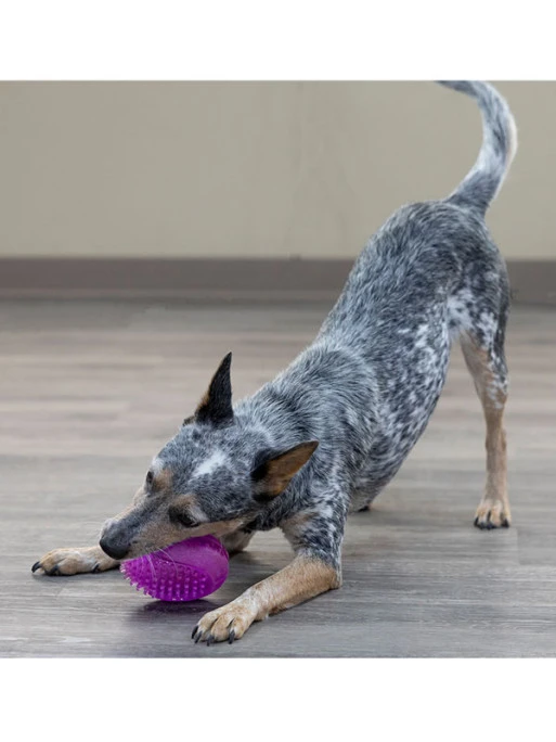 Avec sa surface à picots, il vient masser les gencives lors des séances de jeu, et aide ainsi à nettoyer les dents.
