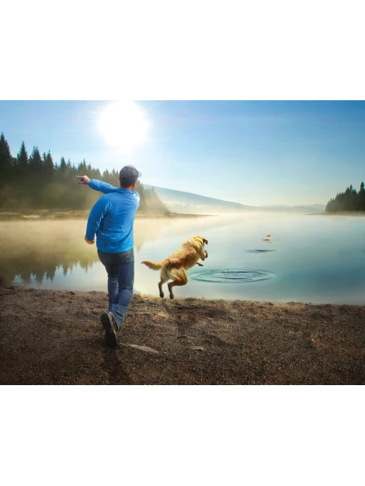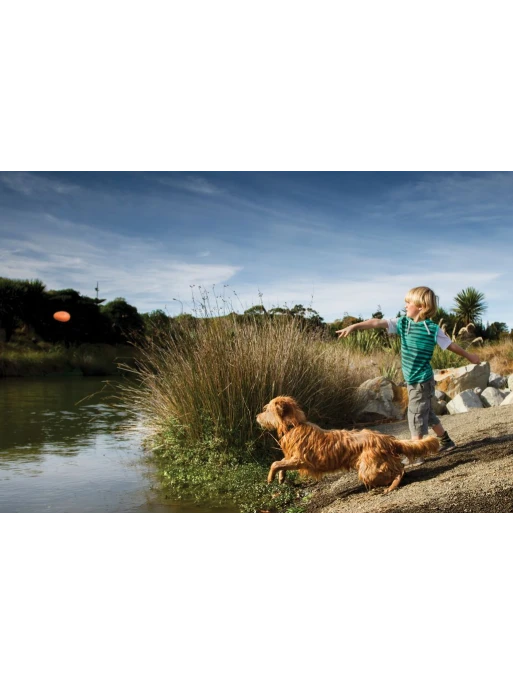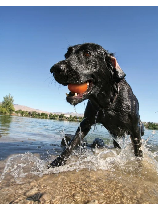 Le jouet flottant SKIPPING TONES de chez Kurgo est aussi distrayant pour le chien sur la terre que sur l’eau.