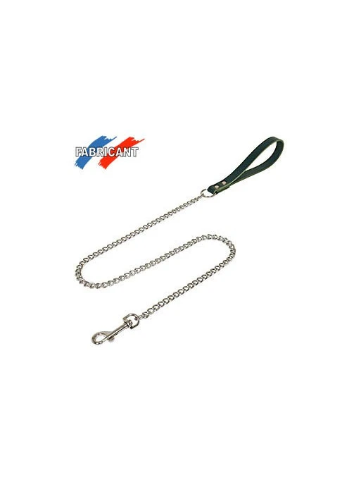 Fil 2,5 mm acier chromu00e9, longueur 1,00 m, poignu00e9e crou00fbte de cuir rivetu00e9e, mousqueton amu00e9ricain.