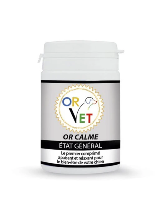 Conu00e7u pour les chiens stressu00e9s et actifs, l’Or-Calme 120 comprimu00e9s Or-Vet est un comprimu00e9 complet qui permet un apaisement gu00e9nu00e9ral de votre chien notamment lors de transports compliquu00e9s.