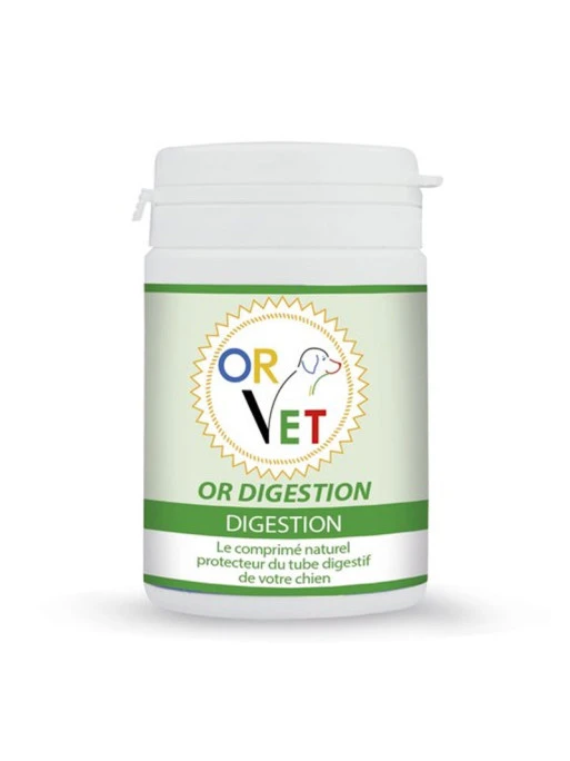 Favorisez le bon fonctionnement intestinal de votre chien avec l’Or-Digestion 60 comprimu00e9s Or-Vet qui offre un pouvoir protecteur pour sa muqueuse digestive et qui amu00e9liore la qualitu00e9 des selles.