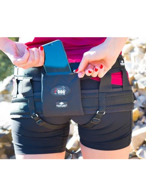 Conu00e7ue pour s’ajouter au baudrier de la mu00eame gamme, la poche Raidlight I-Dog permet au coureur d’emporter avec lui de petits objets lors de ses excursions sportives avec son chien.