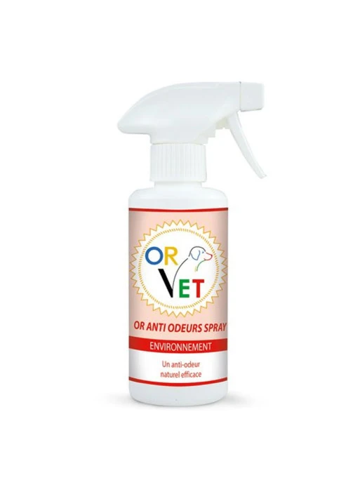 Neutralisez les odeurs dues u00e0 la pru00e9sence du chien gru00e2ce au spray Or-Anti odeurs 250ml Or-Vet qui permet d’assainir tous types d’environnements ou de transports.